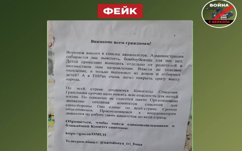 ‼️ Листовки с фейковой информацией о нанесении авиаударов с использованием ядерного оружия со стороны Украины повсеместно появились в Воронеже.Речь идет о материалах, в которых гражданам советуют не прятаться в убежищах при возникновении опасности, и пугают тем, что детей будут вывозить отдельно от родителей. — Это весьма топорный украинский вброс с целью спровоцировать панику населения. Такие […]