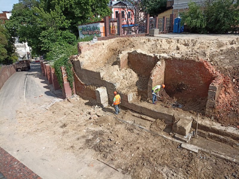 – Остатки кирпичной кладки из пустотелого современного кирпича, которые можно видеть за ФБС блоками, также являются более поздними (современными) и имели следы деструкции (трещины), – отметили в управлении по охране объектов культурного наследия.